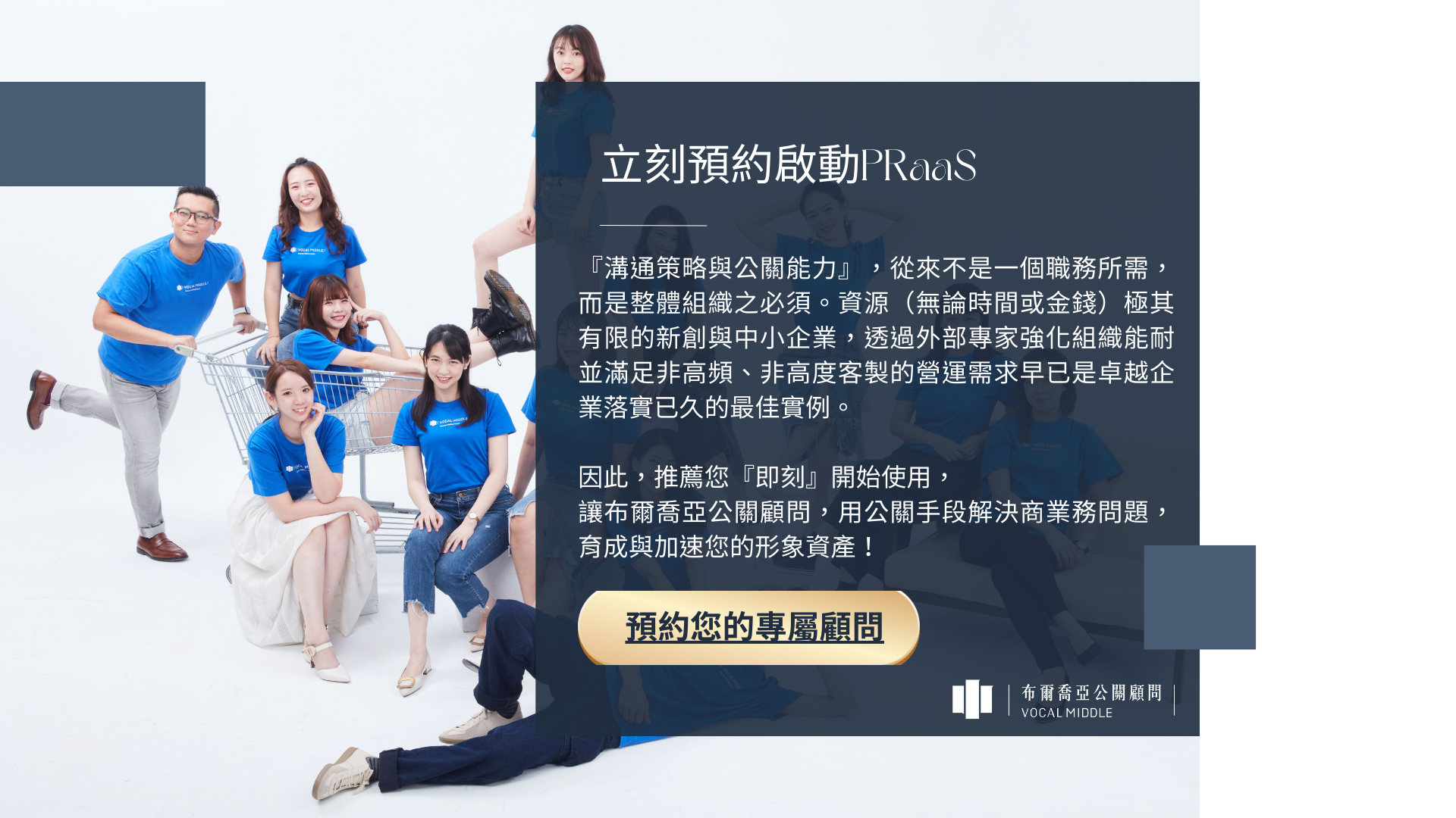 因此,【PRaaS; PR as a Solution】一站式公關顧問解決方案平台,應運而生: