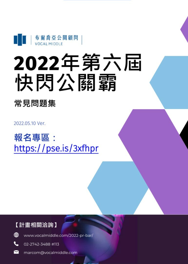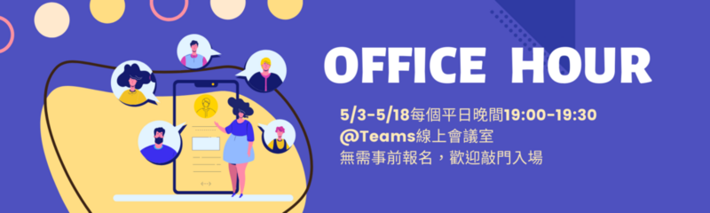 若您已在報名準備階段,對於計畫內容、徵選機制、職務角色尚有不清楚之處,即日起至5/18(三),每個平日晚間19:00-19:30,《快閃公關霸》籌備團隊在線上特別開設「Office Hour」,由布爾喬亞在線提供諮詢協助。無須事前報名,歡迎在開放時間,直接點選連結、敲門入場。
