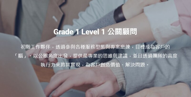 此層級主管是管理角色中第一級仰賴依靠的支柱,由跨部門 Grade 3 組成的金三角核心小組,不僅帶領麾下公關顧問團隊擬定產業進攻策略,同時肩負組織團隊樣貌形塑與管理掌握部門獲利能力
