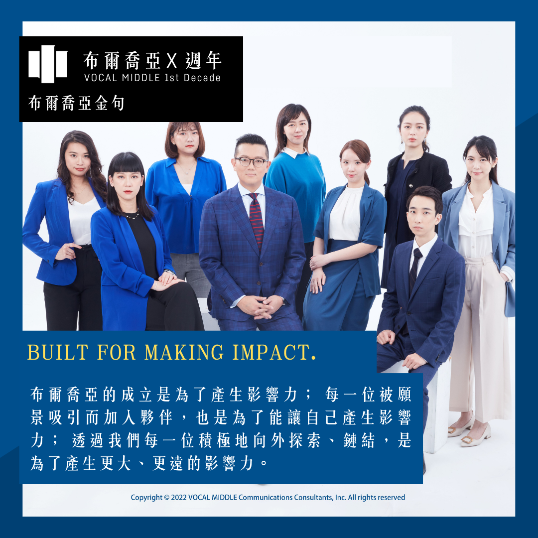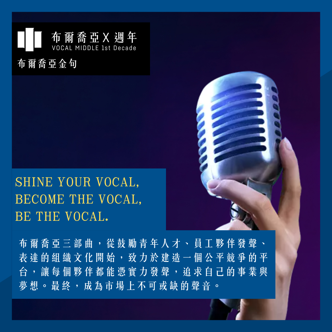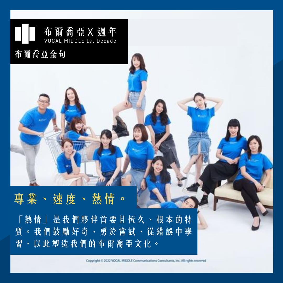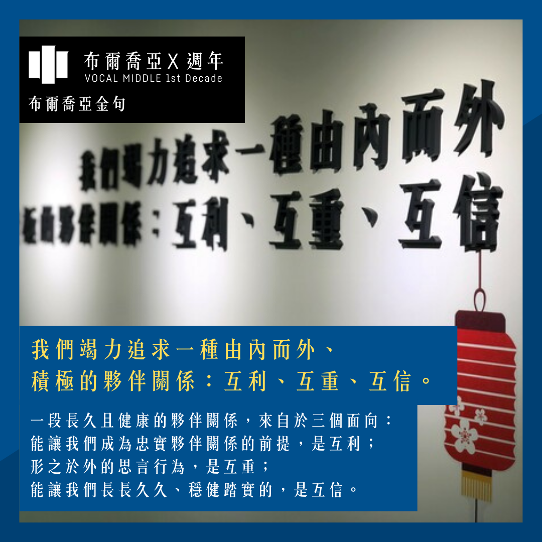 為紀念這項重要的十年里程碑,我們邀請各界的夥伴,包含內部夥伴、前夥伴、外部合作夥伴、重要客戶與青年朋友參與票選,最終獲得70多位夥伴們的支持,和我們一同找出最符合布爾喬亞的十大金句。