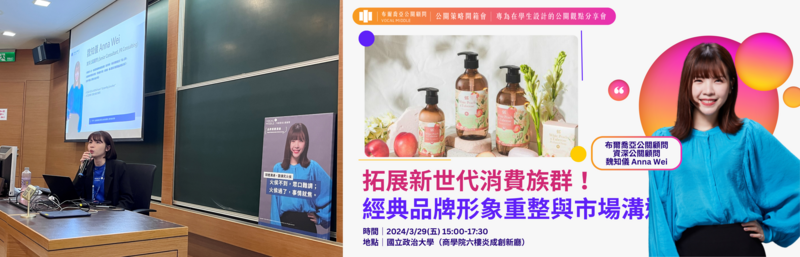 每年的3月29日(青年節),都是布爾喬亞對外盛大公告當年度「新聲代發展計畫」的日子,本次碰巧正逢「政大校園徵才博覽會」,因此布爾喬亞也將預計在同日舉辦的「公關策略開箱會」移師政大舉辦,除了邀請公關顧問Anna來到政大分享與《香草集》的合作案例,在尾聲,首席布爾喬亞Joseph也親自來到現場,為所有青年朋友們開箱:2024年布爾喬亞到底要招募、養成什麼樣的夥伴,求職者又可以如何爭取加入布爾喬亞的機會?