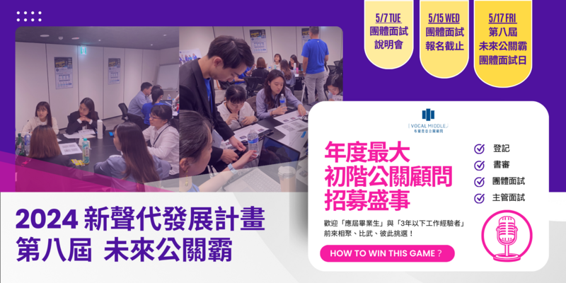 「新聲代發展計畫」是《布爾喬亞公關顧問》專為「初階公關顧問」設計的加速職涯發展計畫,搭配每一年度的招募盛事-「未來公關霸」,從眾多優秀人才中,找到一批批渴望且能夠與布爾喬亞共創未來、成為「新時代的造局者」的夥伴。