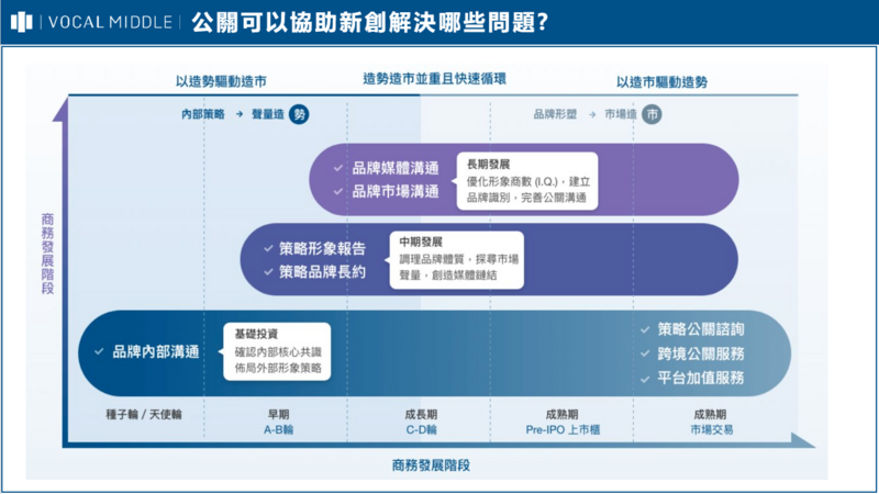 布爾喬亞能夠在新創草創、成長階段、發展成熟期,為不同需求提供相對應的公關服務。