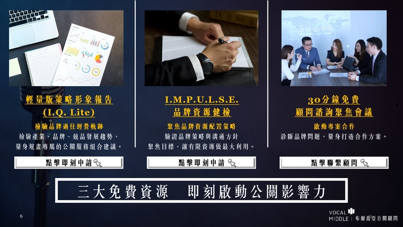 I.M.P.U.L.S.E. 品牌資源健檢:聚焦品牌資源配置策略。驗證品牌策略與溝通方針。聚焦目標,讓有限資源做最大利用。