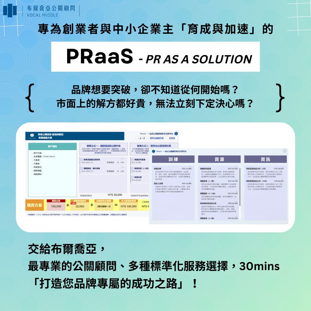 你的品牌經營之路,也曾出現類似以上的吶喊,甚至仍在持續面對中嗎?布爾喬亞推出了專為創業者與中小企業主設計的【PRaaS一站式公關顧問解決方案】,本期電子報精選其中四種最多企業採用的標準化公關顧問服務,歡迎您往下找尋您的痛點「對號入座」然後「對症下藥」!若想進一步了解您的專屬解方,歡迎立刻預約公關顧問,讓我們用30分鐘為您一對一找出專屬服務解方。