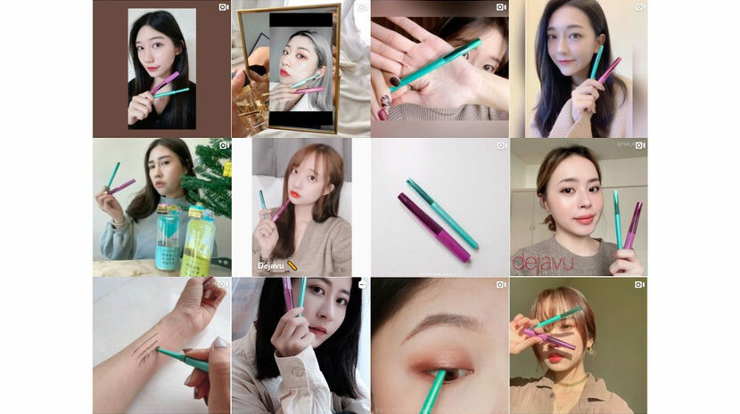 有別於常見試色畫法,特別設計KOL短影音中加入手背描繪眼睛的橋段,使用dejavu就是不暈柔霜眼膠筆筆畫出粗細不同並帶有弧度曲線的眼睛圖案,具體描繪產品使用手法與教學,細節呈現「就是不暈柔霜眼膠筆」滑順、細緻筆頭的優異設計。