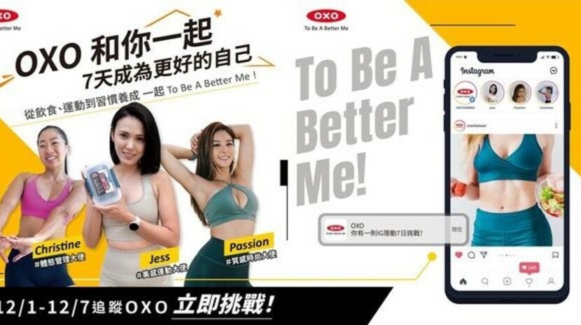 OXO長期主力溝通健康專業族群,透過與Cofit全台最大線上營養師平台、全真瑜珈健身策略性合作,以品牌專業形象強化溝通「飲食營養」與「健身運動」兩大領域,拓展產品使用情境的想像同時,定調「體態養成」的溝通訴求,有效建立品牌欲溝通的附加價值。